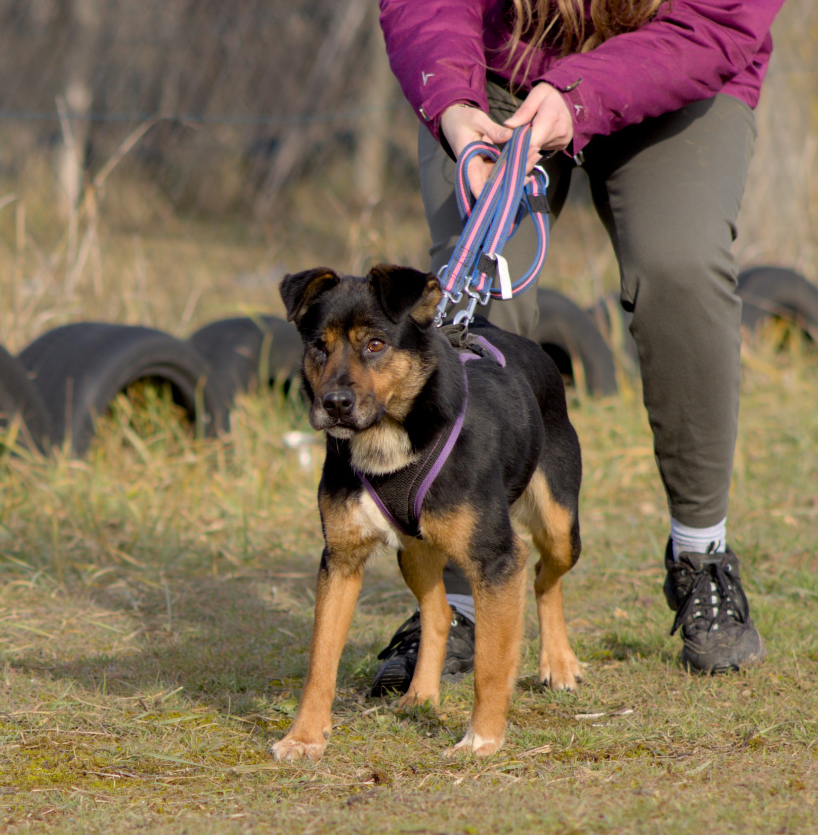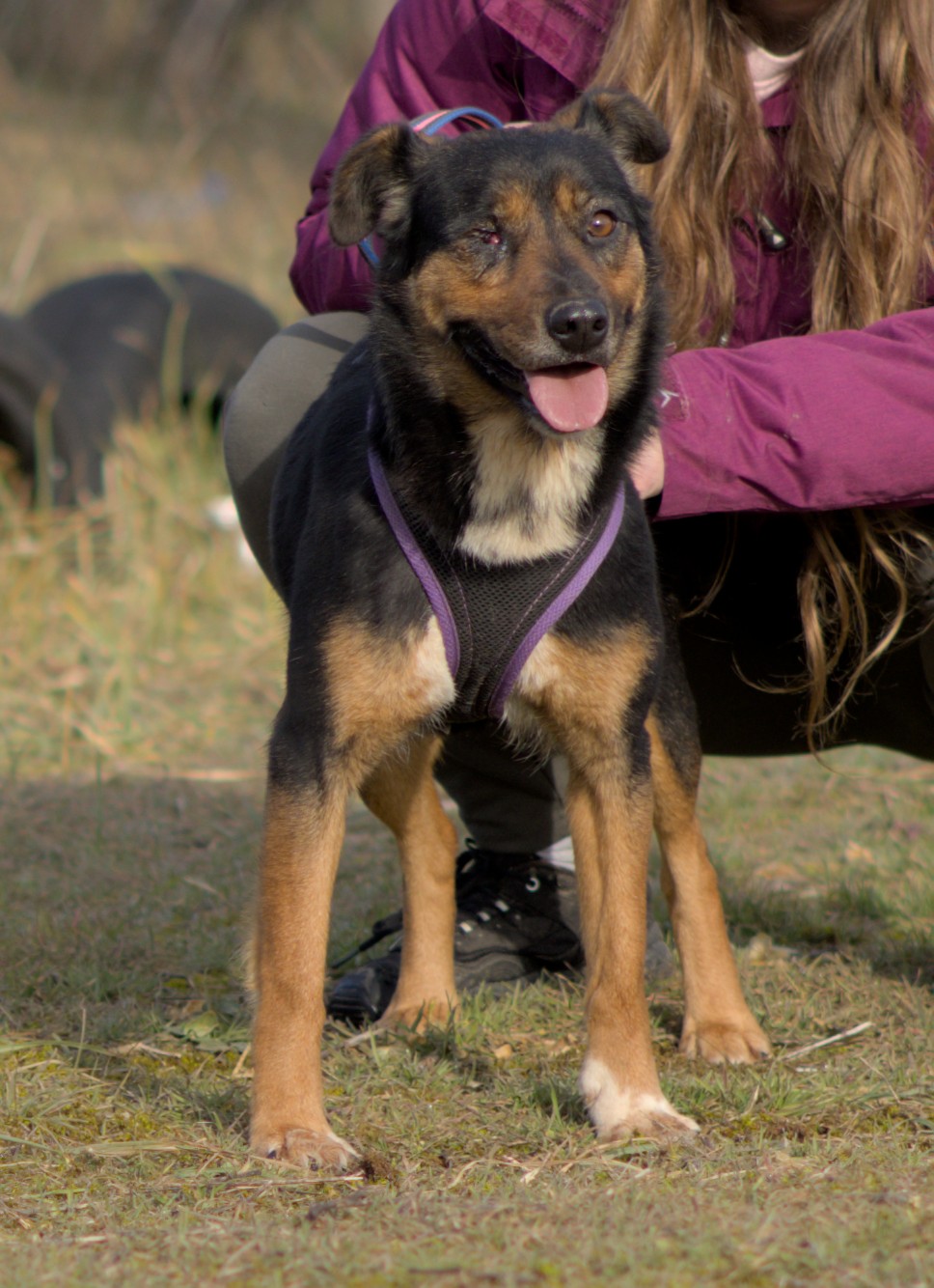 Mary egy 3-4 éves végtelenül kedves, bújós szuka kutya. Közép termetű, kb 17kg. A menhely előtti életében ki tudja, min ment keresztül, mert az egyik szemét v.mi kinyomta, ezért félszemű, de ez nem gátolja semmiben. Imád hozzá bújni, ölelni a sétáltatójához, jobban érdekli a kapcsolódás, mint maga a séta. Közepes mozgásigényű, más kutyákkal összeszoktatható, cicákkal nem ismert a viszonya, de tesztelhető, ha ez külön kérés lenne.