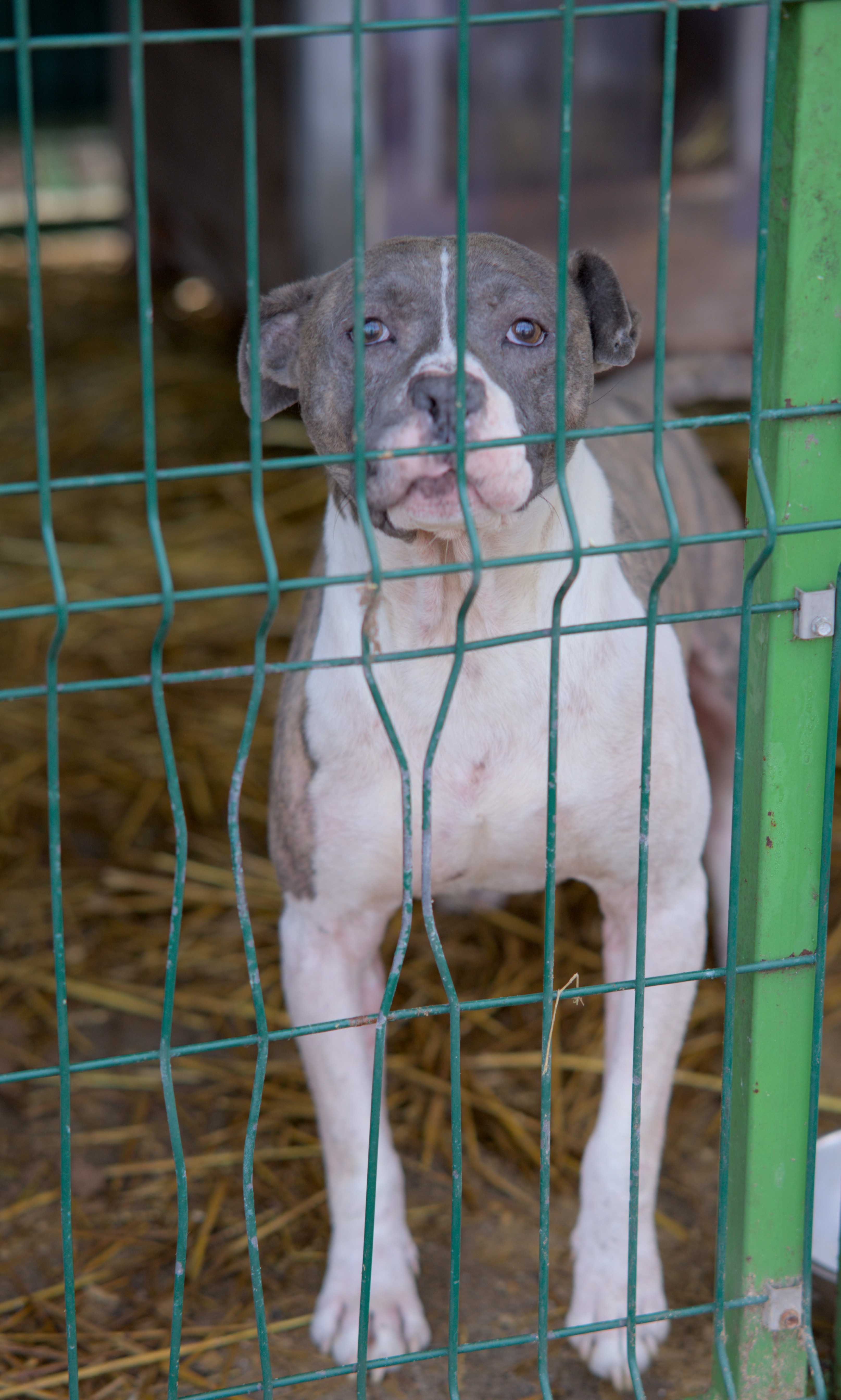 Wolfi: bull típusú, 2 év körüli fiúcska. Emberekkel nagyon kedves, mindenkinek nagyon örül, szinte táncol örömében, és nagyon vágyik a simogatásra.